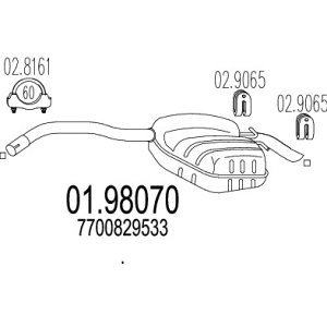 Izpuh Renault Safrane. Letnik: 92-96. Motor: 2.0 12V, 2.2. Teza 11,3 kg, Dolzina 1100 mm. Zadnji izpušni lonec.