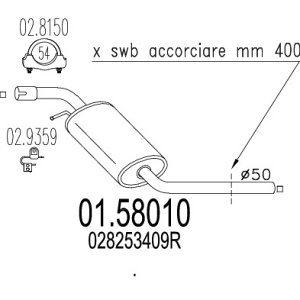 Izpuh Volkswagen Transporter. Letnik: 90-03. Motor: 2.4 D. Srednji izpušni lonec. Teza 6,62 kg, Dolzina 1415 mm.