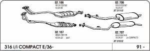 Izpušni sistem za znamko BMW 3Model: E36 Letnik: 91Motor: 1.6Del: Zadnji lonec