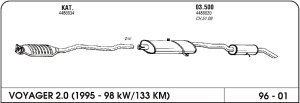 Izpušni sistem za znamko ChryslerModel: Voyager IILetnik: 97 >Motor: 2.0/3.3Del: KompletSlika je simbolična.