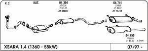 Izpušni sistem za znamko CitroenModel: XsaraLetnik: 97 > Motor: 1.4/1.8 16V Del: Prednji lonecSlika je simbolična.