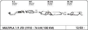 Model: Multipla 105Letnik: 98Motor: 1.9 JTDDel: Srednji lonecSlika je simbolična.