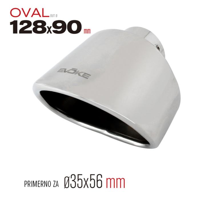 Z izpušnim nastavkom Evoke lahko športno polepšate videz vašega vozila. Specialni ovalni izpušni nastavek je primeren za vhod velikosti 35>56 mm. Enostavna montaža s sistemom vijačenja, varjenje in vrtanje ni potrebno. Sestavljen je iz visoko kakovostnega nerjavečega jekla.