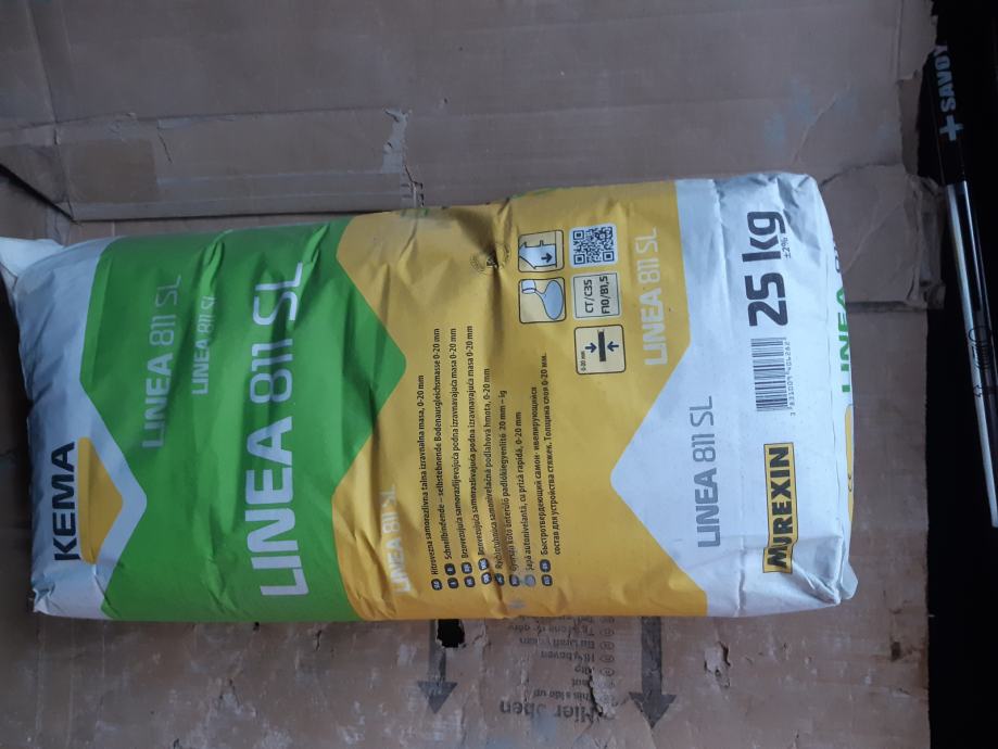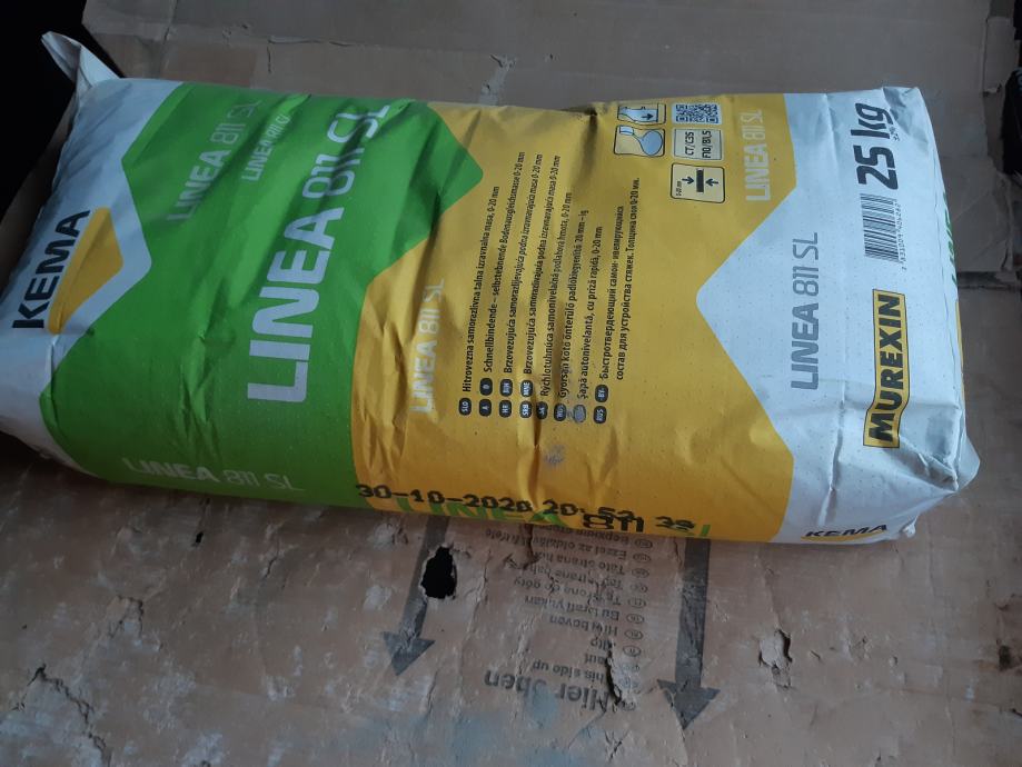 Prodam žakelj, 25kg izravnalne mase Linea 811 SL, kateri je ostal od gradnje. Izravnalna masa je hitrosušeča, prehodna po 4 urah. Nanos od 0 - 20 mm. Rok uporabnosti do 30.7.2021. Možnost dostave.