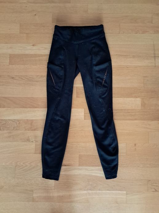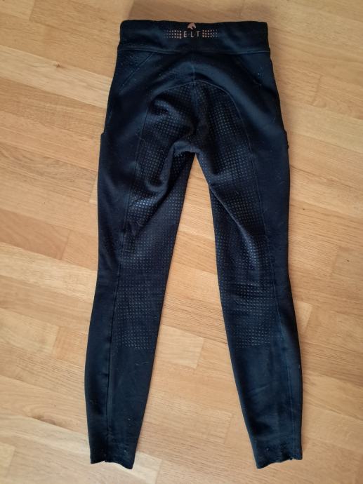 Črne jahalne pajkice. Dobro ohranjene, ker so bile v uporabi samo eno zimo. Imajo 2 drsna žepa za mobilni telefon s sijočim silikonskim potiskom. Zadnji del pasu s sijočim silikonskim tiskom in logotipom ELT. Termo pletenina ima brušeno notranjo stran, ki zagotavlja prijetno toploto. Material je zračen in visoko elastičen, kar pomeni, da se optimalno prilagaja postavi.
