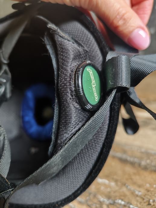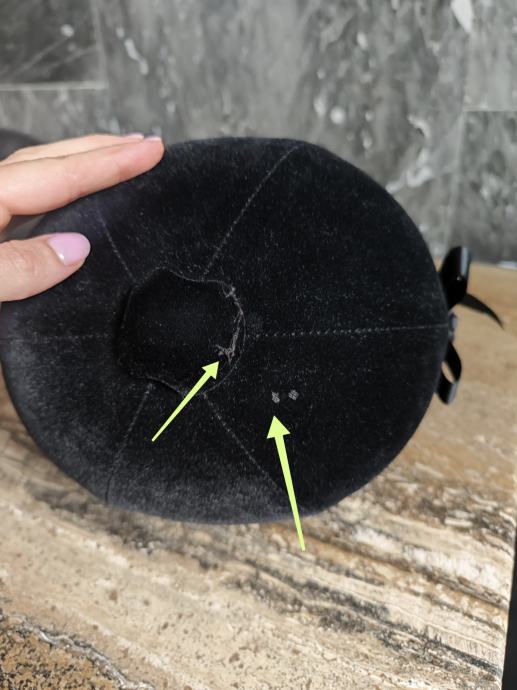 Dve manjši, skoraj neopazni površinski poškodbi (na vrhu čelade na zunanji strani), ki ne vplivata na varnost in estetski videz čelade - je označeno na fotografiji.