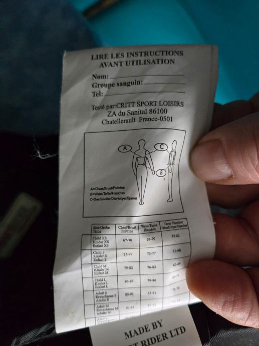 Prodam otroški jahalni jopič (zaščita pri padcu), številka S, malo rabljen.