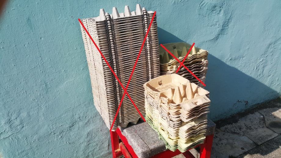 Prodam embalažo ali karton od (kokošjih) jajc za 6 jajc. Vsa embalaža je žal s potiskom (Mercator in drugi), sicer se pa to lahko zmeraj dol lepo odlepi (nalepko namreč). Za embalažo za 6 jajc je vsega skupaj 21 kosov. Cena v oglasu je za 6/1 na komad. Minimalno morate vsaj 10 kosov embalaže vzet. Če pa vzamete kar vse, pa primaknem tudi kakšen popust. Vse skupaj je primerno za koga, ki ima kmetijo (in kokoši nesnice), čeprav se pa lahko to embalažo tudi uporabi za zvočno izolacijo nekega prostora realno...