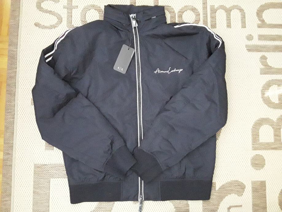 Armani Exchange moška jakna, temno modre barve, velikosti S (na etiketi je označena velikost XS, vendar bolj ustreza S), nenošena; ugodno prodam. Mere za jakno lahko pošljem naknadno.