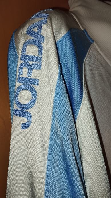 Prodajam Jordan jakno v XXL velikosti v belo-modri barvni kombinaciji. Jakna je v dobrem stanju z značilnim Jordan logotipom in modro-belimi detajli na rokavih. Material je prijeten za nošenje, z zadrgo spredaj za enostavno zapenjanje.