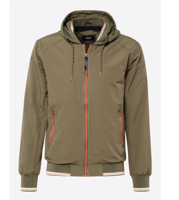 Nova lahka poletna jakna INDICODE Jeans. Velikost M. Prsna širina 57cm, hrbtna dolžina 65cm, rokav dolžina od pazduhe do konca rokava 51cm, širina v pasu max.54cm .Barva olivno zelena, patenti rokav in v pasu.