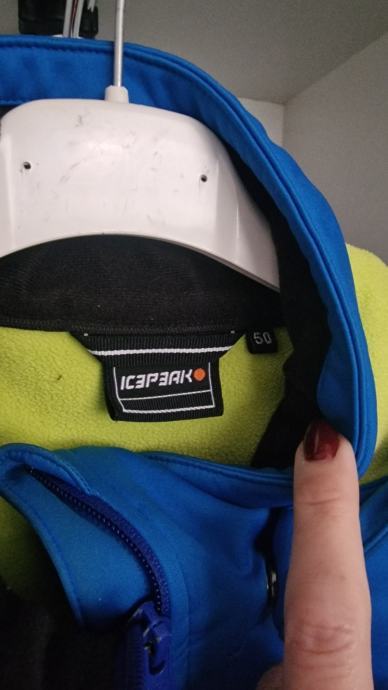 Odlično ohranjena moška jakna znamke Icepeak, stevilka 50. Modre barve, noter flis živo rumene barve. Polno funkcionalna, odlična za pohodništvo.