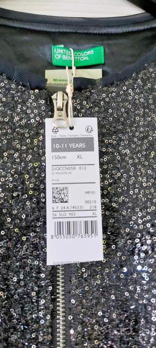 Prodam novo dekliško bomber jakno znamke Benetton, velikost 10 – 11 let oziroma 150 cm.