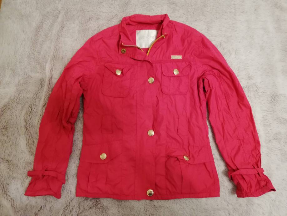 Dekliška elegantna vetrovka ca 122, gor št 8. Vijola barve. Lepša kot na sliki. Brezhibna. Dolžina ca 47, širina 35 cm, rokav 43/35 cm.