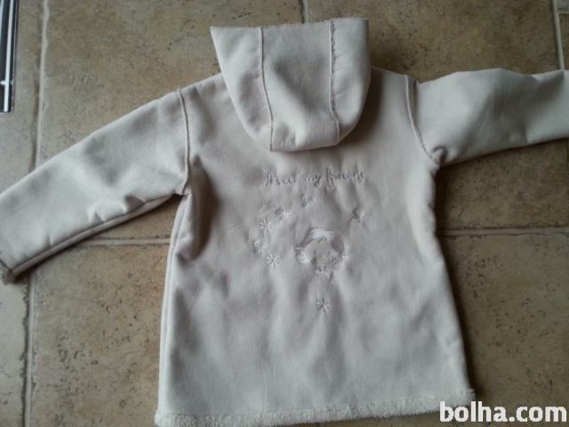 Srčkana, podložena s kožuščkom, z vtkanim vzorčkom spredaj in na hrbtu, stil marsovčka, ki se zapenja z zadrgo ali gumbki. Velikost 116, primerna od 4-6 leta. Odlično ohranjena.