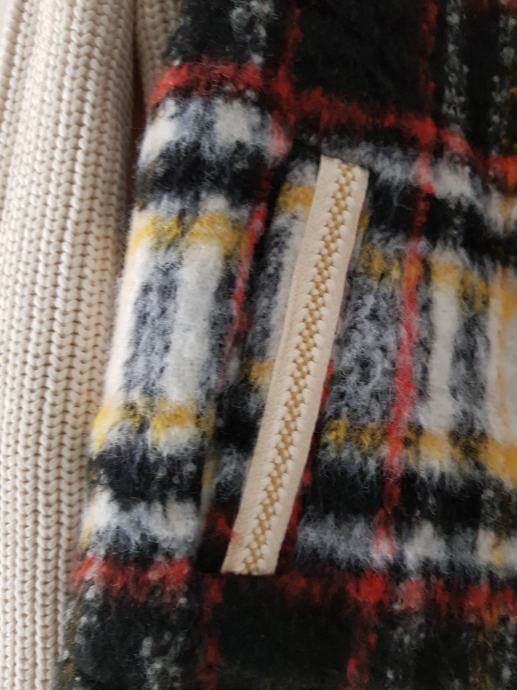 Kot nova, skoraj nenošena, izredno topla, podložena, ob straneh ima 2 žepa, zapenja se z zadrgo in netki, rokavi so pleteni