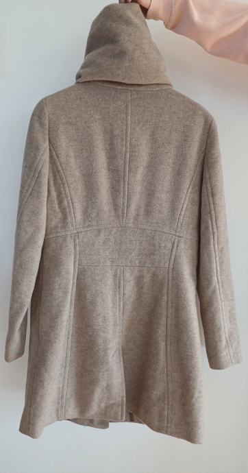 Prodam kot nov plašč oz. jakno, dolžine do kolen, rahlo teli rano, bež barve, dejanska velikost je 40 (na plašču je 42).