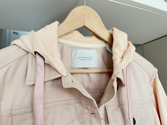 Malo nošena Maison Scotch jakna, pri trupu v stilu jeans jakne, rokavi so ohlapni in iz mehkega materiala, za številko S ali M - se nosi tako ali tako oversized.