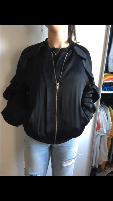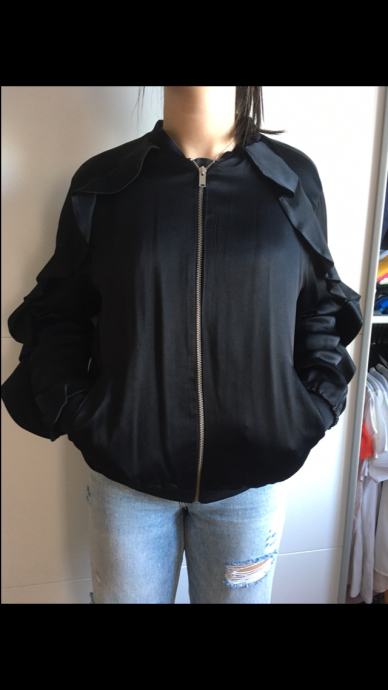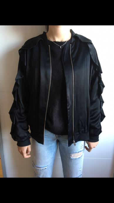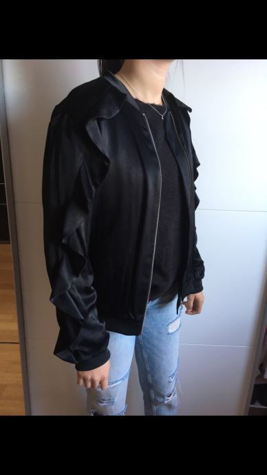 Prodam enkrat oblečeno Zara črno jakno, velikost S. Lahka, prijetnega materjala. Z zadrgo in dvema žepoma. Na rokavih z dodatkom, glej slike.