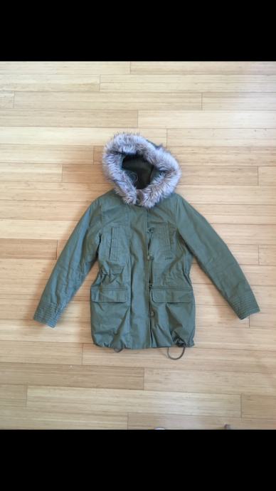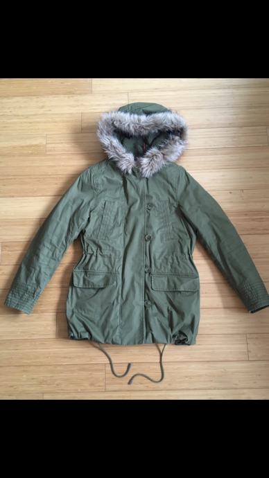 Prodam zeleno parko/jakno/bundo številka s/36. V pasu in pri dnu nastavljiva s paskom. Številni žepi.