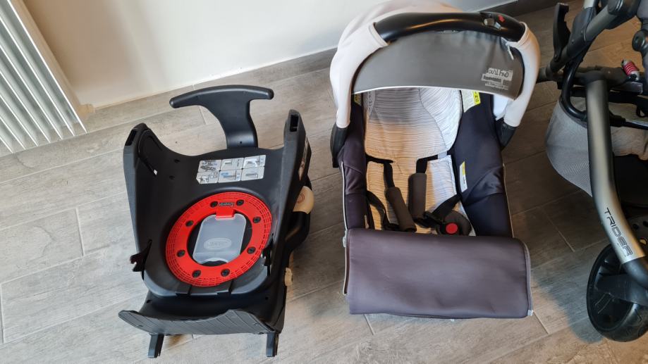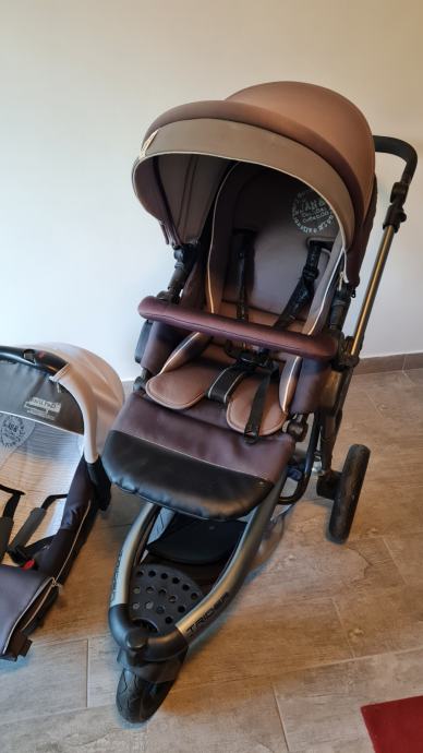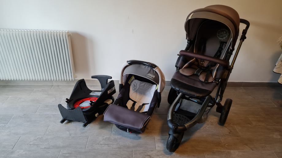 To je 3 delni komplet. Voziček z lupinico in športnim delom. Lupinica se v avtu lahko uporablja za sedeč ali ležeč položaj. Lupinico se fiksira v ISOFIX nosilec (podnožje).