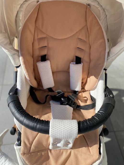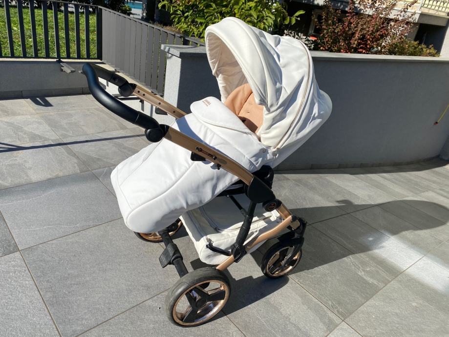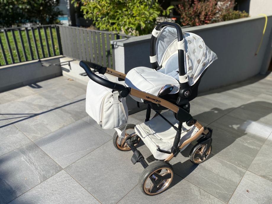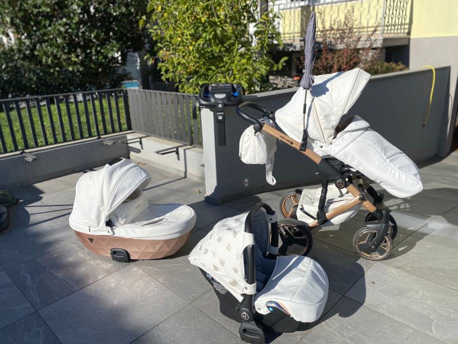 Prodam lepo ohranjen voziček Junama mirror satin 05 (po domače Bronzie ) skupaj z isofix bazo, lupinico in adapterji. Cena 650€.
