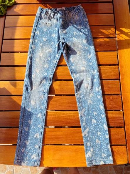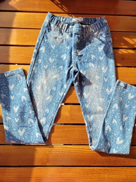 dekliške kavbojke z srčki. Dolžina hlač je 93 cm. V pasu je elastika.