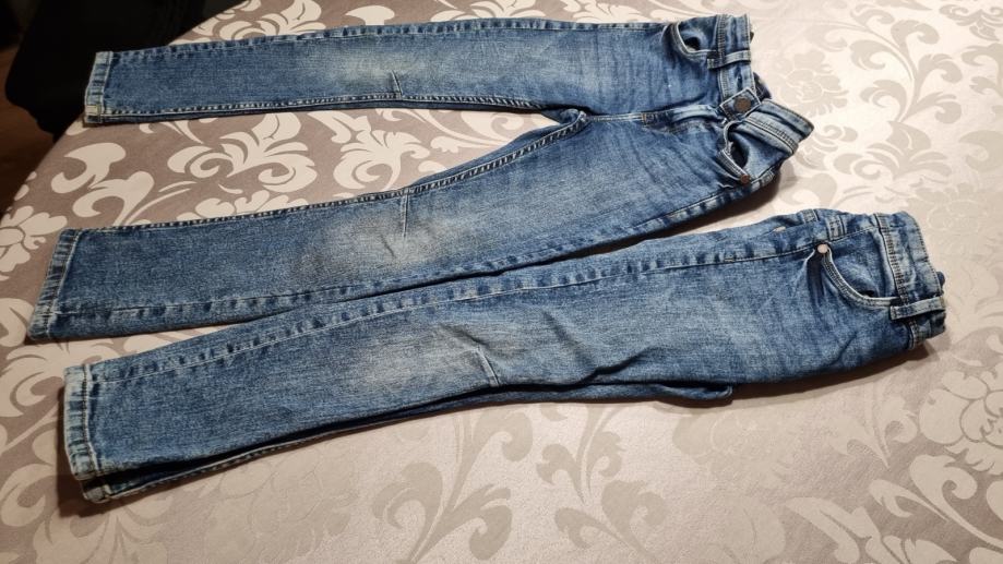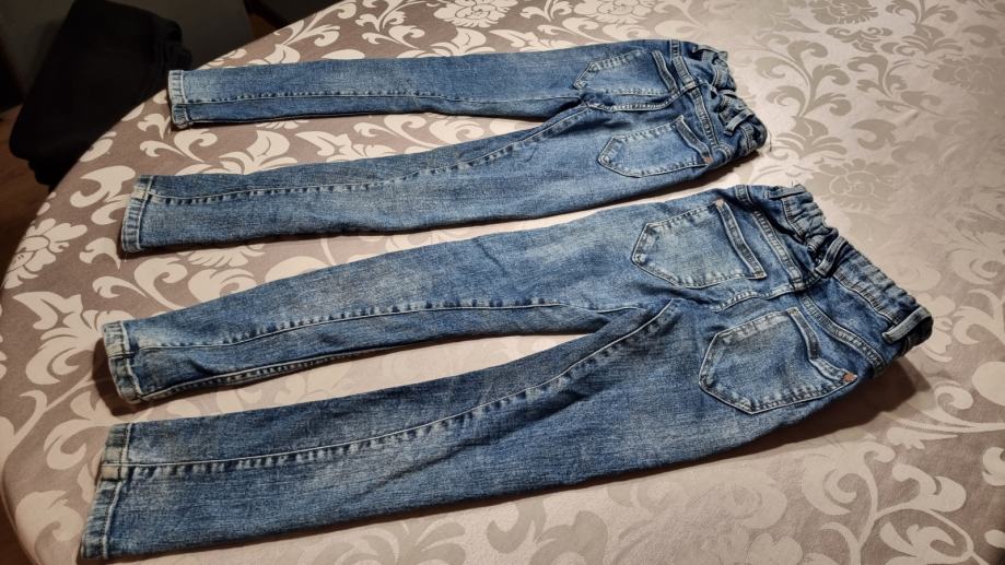 So zelo lepo ohranjene. Material je 82% bombaž in 16% poliester in 2% elastan. So zelo kompaktne, primerne tudi za zimo s spodaj oblečenimi pajkicami. Na vsaki strani imajo spredaj dva notranja žepa, zadaj pa dva zunanja. V zadnjem delu pasu je elastika, ki se regulira z gumbki, glede na širino pasu.
