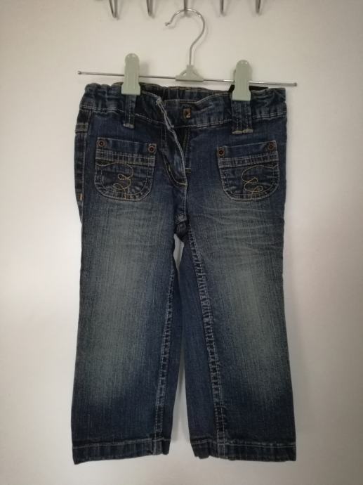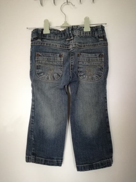 Prodam kavbojke oz. jeans hlače št. 80 iz rahlo elastičnega jeansa. Notranja dolžina hlačnice (razkorak) 29 cm, višina pasu cca. 15 cm. Malo nošene, žepi spredaj in zadaj. Znotraj imajo mehanizem za zategnitev elastike, vendar je elastika izgubila prožnost (lahko se jo zamenja ali uporabi pas če je potrebno).