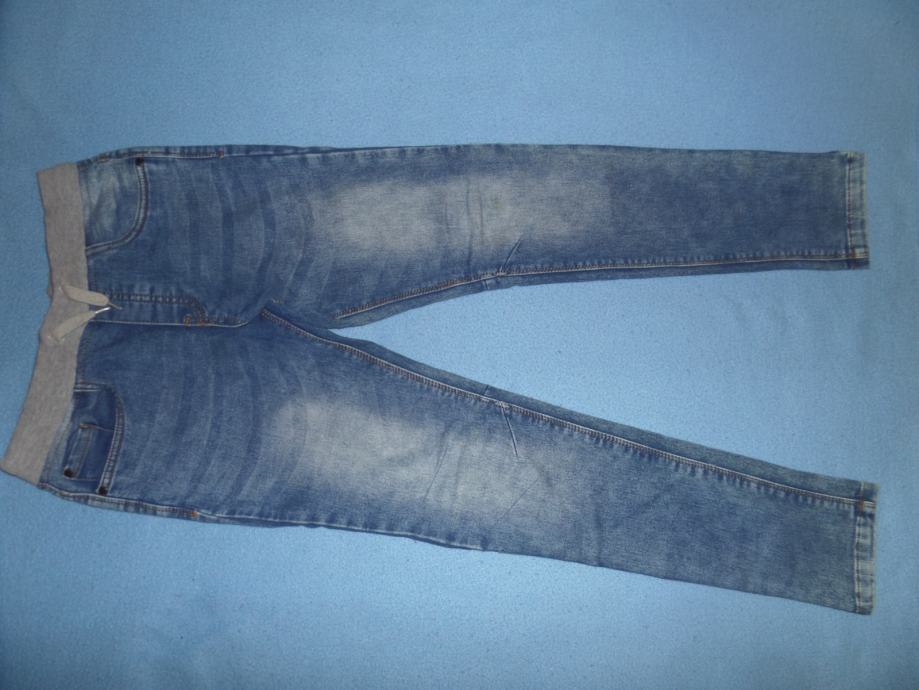Prodam nove, nenošene jeans hlače z elastičnim pasom, št. 152.