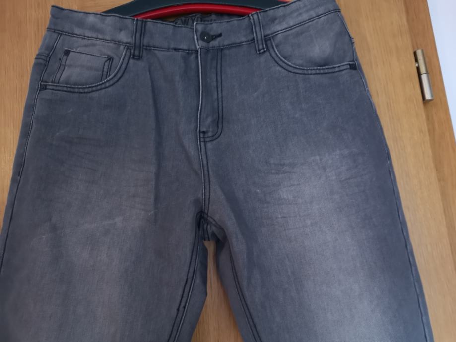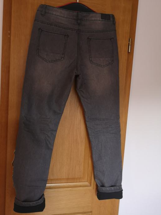 Prodam nove, nikoli nošene fantovske sive kavbojke, primerne tudi za moško S. Podložene so s črnim yersijem, če so predolge, jih lahko zavihate, izgledale bodo zelo modno.Dolžina v razkoraku je 85 cm, v pasu merijo 41 cm. Cena je 14,00 eur + 4,00 eur morebitne navadne poštnine ob predhodnem nakazilu na trr.