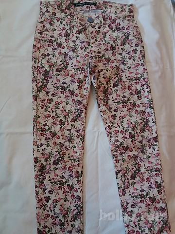 Prodam kot nove lepe jeans hlače št. 34, saj so bile oblečene le 2 x, z lepim vzorcem, so rahlo raztegljive, kroj je ozek, obseg v bokih 116 cm. Pošljem tudi po pošti.