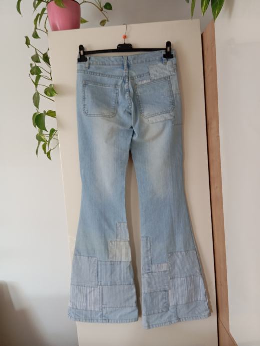 zelo lepo ohranjene, niso raztegljive, v pasu merijo 36cm, od razkoraka do pasu je 21cm, dolžina je 107cm, širina spodnjega roba je 30cm, ne menjam, ptt ni vključena v ceno