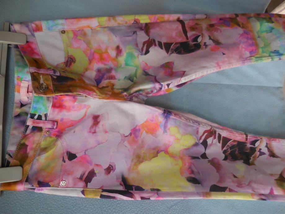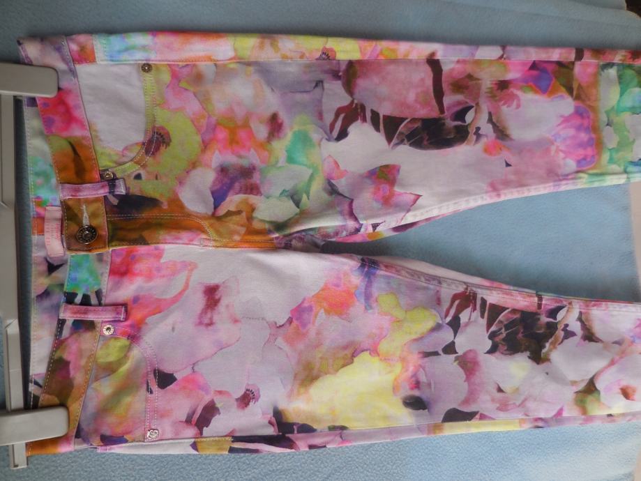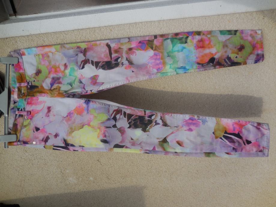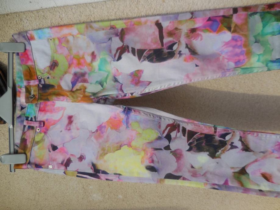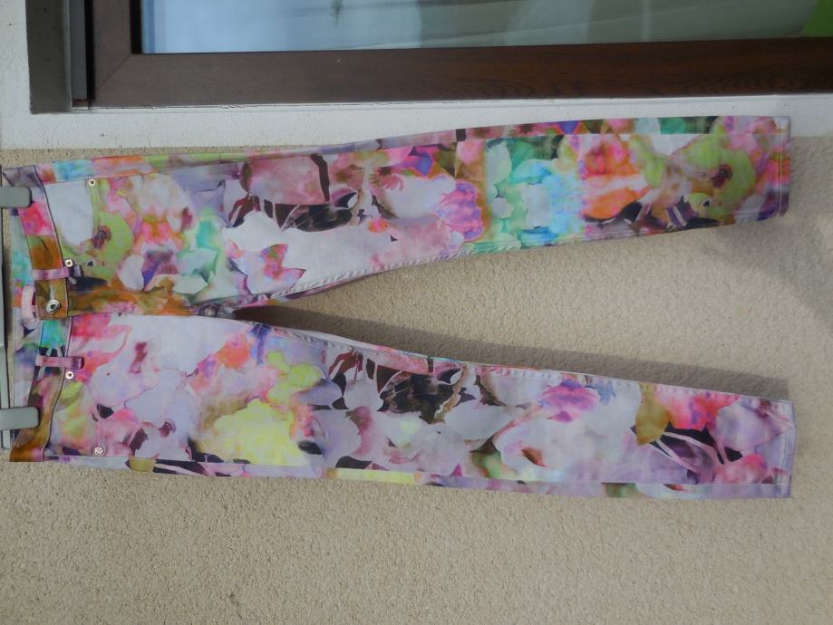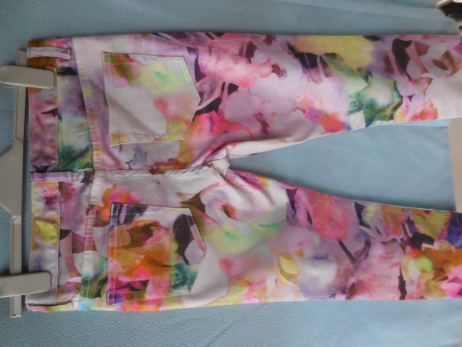 Nove spomladanske jeans raznobarvne dolge hlače. Originalna oznaka velikosti na hlačah je 26, so delno raztegljive. Kupljene so bile preko spleta v tujini, a so mi na žalost preozke v pasu.