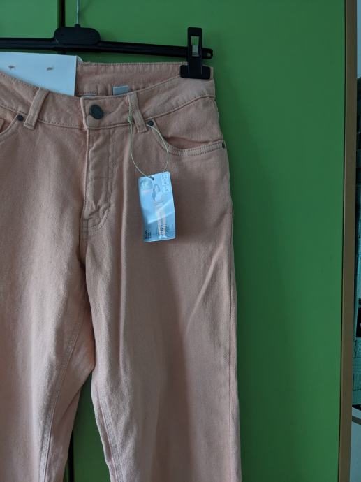 Nove oranžne jeans hlače velikosti 36, izdelane iz 98% bombaža in 2% elastana. Hlače so povsem nove še z originalno etiketo in so idealne za vsakodnevno nošenje