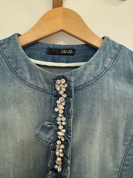 Prodajam Liu Jo jeans jakno v modri barvi, velikost 36. Jakna je izdelana iz kakovostnega jeansa in okrašena z dekorativnimi kamenčki za eleganten videz. Kljub uporabi je v dobrem stanju in predstavlja odličen kos za dopolnitev vaše garderobe.