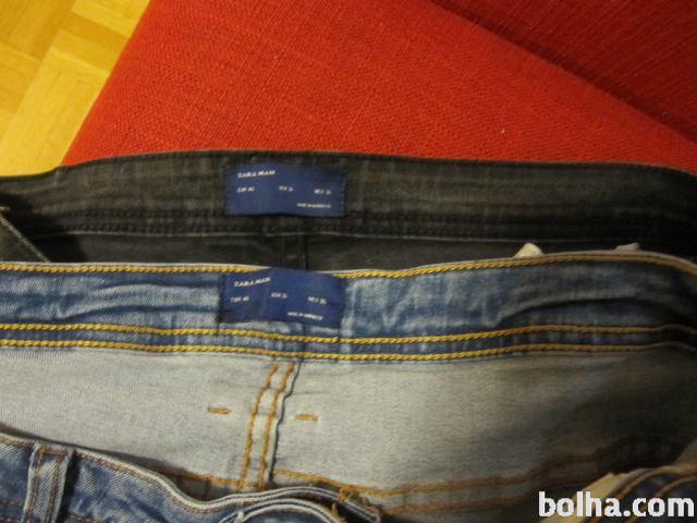 Prodam zelo dobro ohranjene jeans , Zara Man, št. 46, v črni in modri barvi. Model sodoben, bolj oprijet, z elastanom 2%, 98% bombaž. Obseg pasu 90cm, dolžina cca 100 cm. Cena za kos.