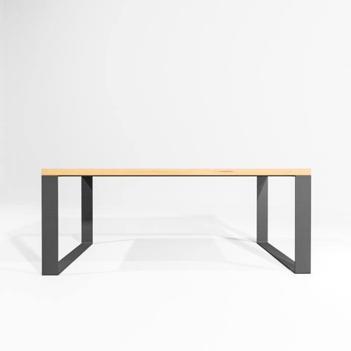 Jedilna miza HARD No. 001 je model, ki ga sestavlja kakovostno, sodobno jekleno podnožje. Sestavljena je iz trendovskih kvadratnih stranskih okvirjev in kombinirana s premium hrastovo masivno mizno ploščo.