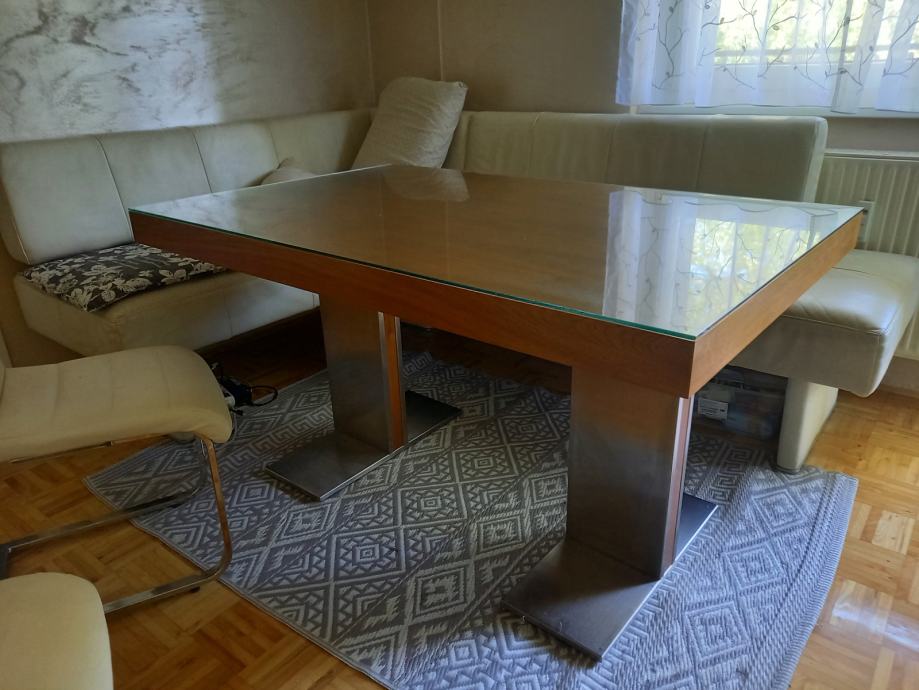 Prodam mizo 140x90 v barvi oreha, kot novo brez prask z zaščitnim kaljenim steklom.