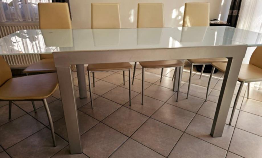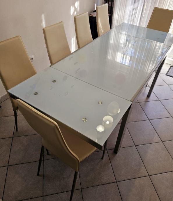 Prodam rabljeno jedilno mizo in 6 stolov. Dimenzije mize so razvidne iz fotografij.