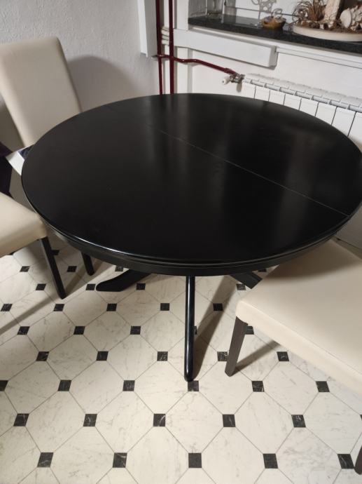 Prodam omenjeno mizo črne barve, fi107cm, miza se tudi po potrebi razširi. Dobro ohranjena, masivna.