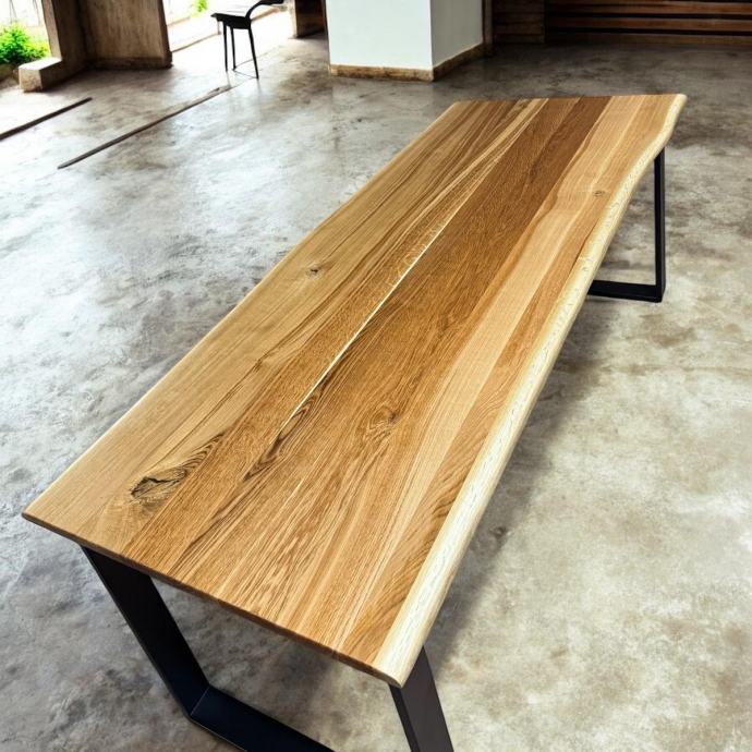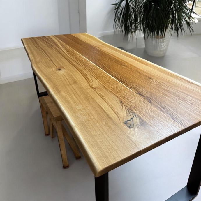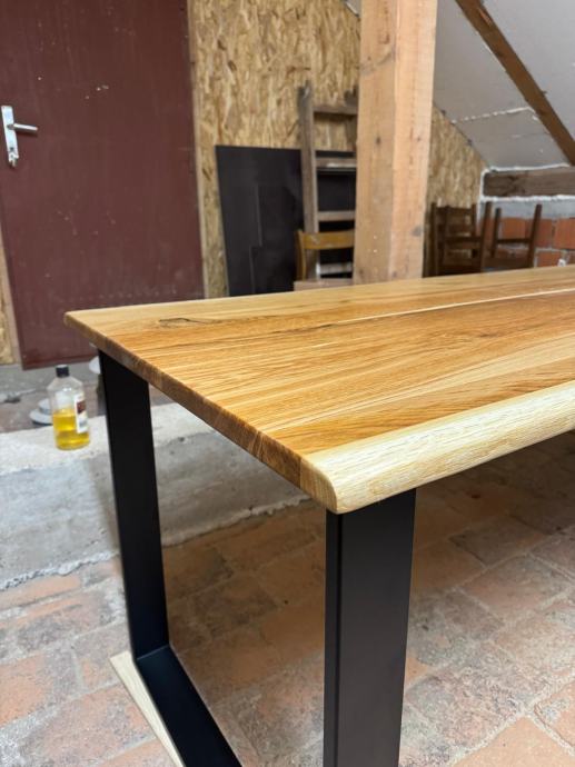 Prodam novo jedilno mizo ravnokar izdelano. Narejena in masivnega hrasta, dimenzije 200 x 80cm in standardne višine 75cm. Noge so kovinske, zelo stabilne in prašno barvane. Miza je premazan in zaščitena z naravnim lanenim oljem in čebeljim voskom.