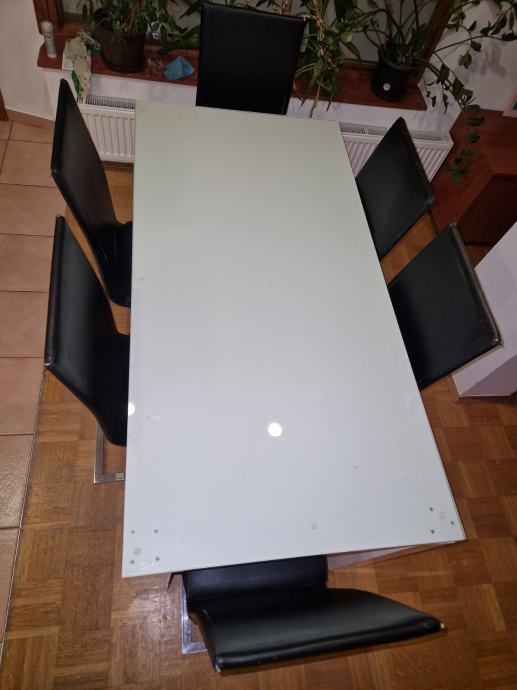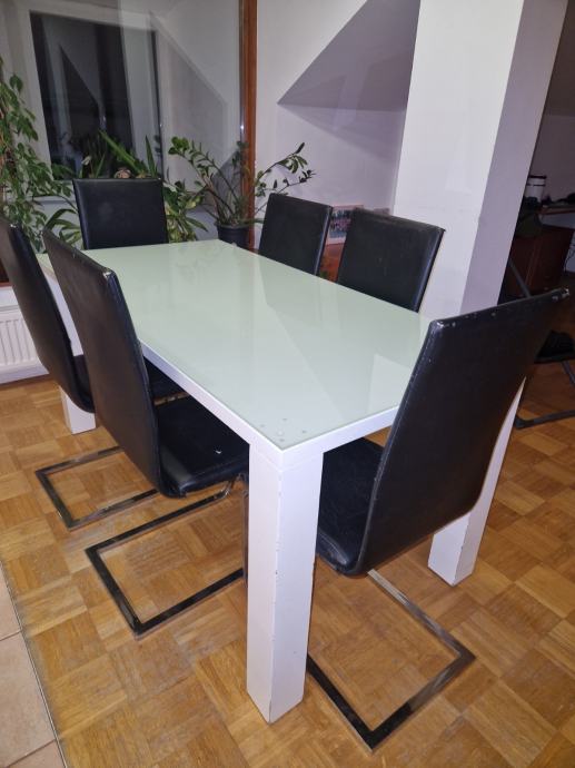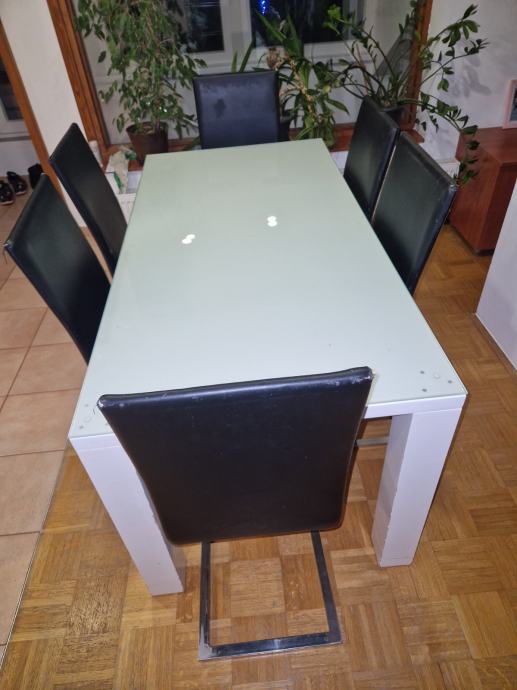 Prodam leseno edilno mizo dimenzij 160x80x5 cm s steklom in 6 stoli.