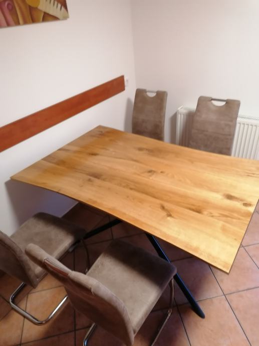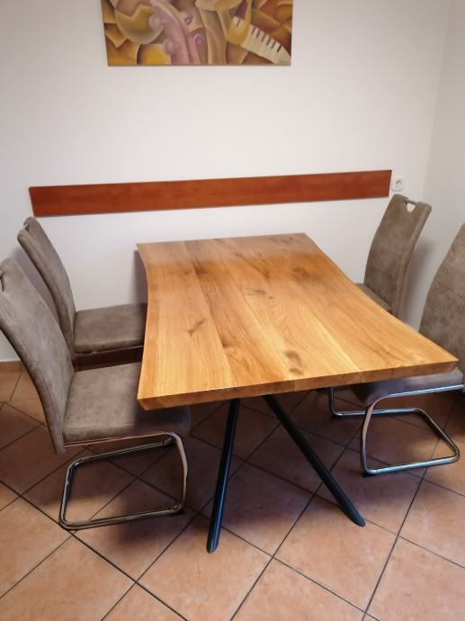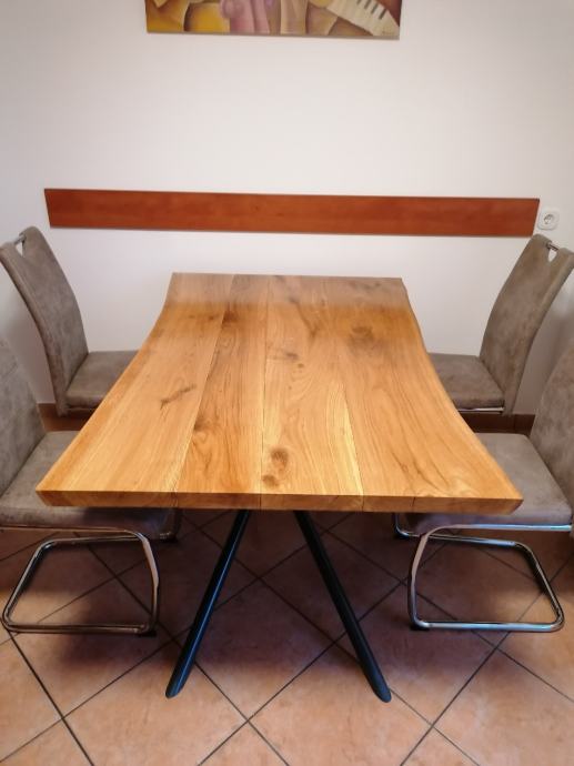 Hrastova miza. Dimezije... sirina cca 90 cm, dolzina 150 cm, visina 75 cm, debelina 4 cm, kovinsko podnozje (BARVA PODNOZJA ANTRACIT)