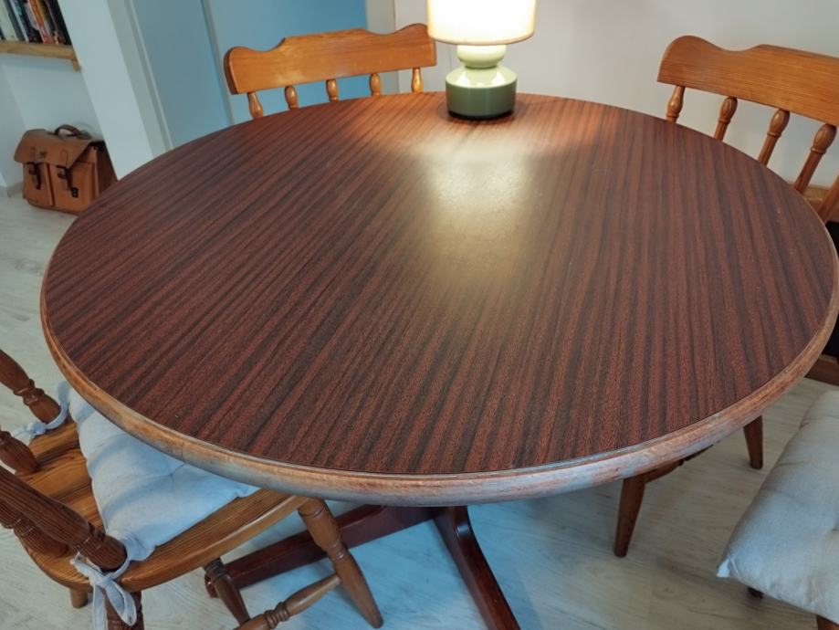 lesena okrogla miza. Premer: 105 cm, dolzina nog 74 cm
