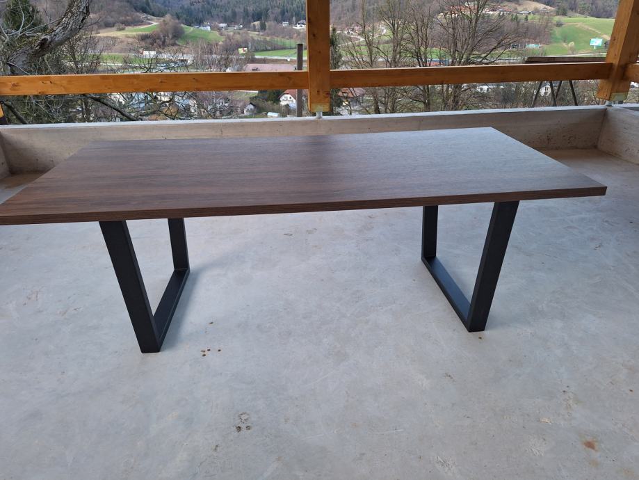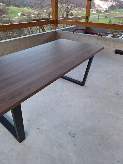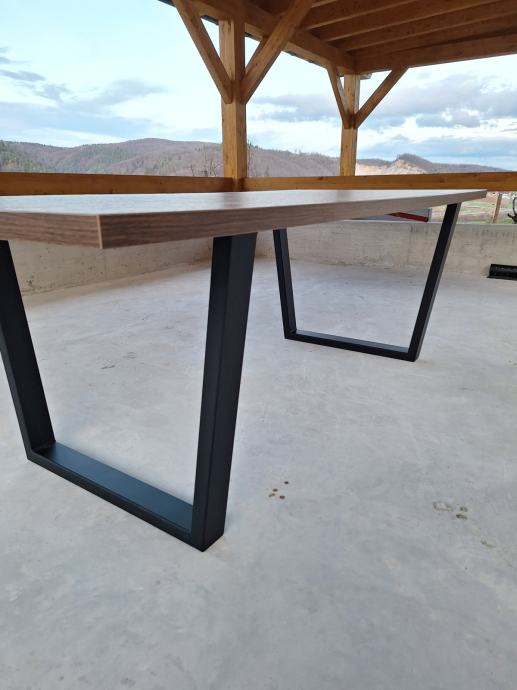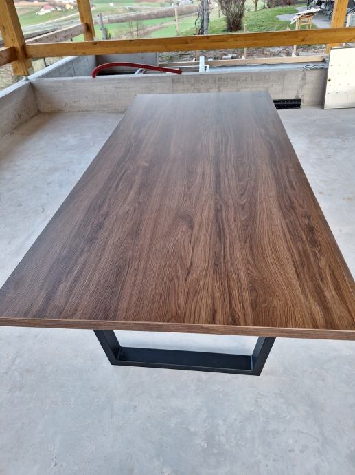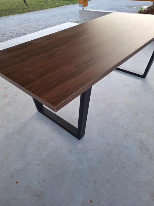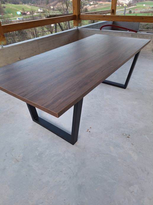 Na voljo dve mizi, imitacija lesa oreha. Ena velikosti 2,2 x 1m, druga 2,5 x 1m. Cena 200€ za ploščo, s podnožjem na sliki 450€.
