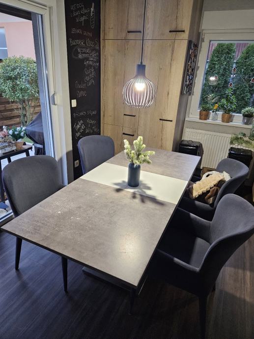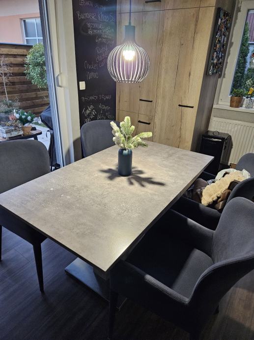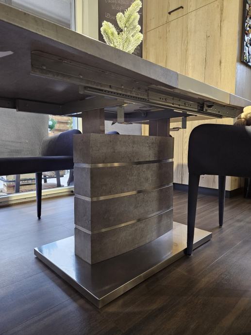 Raztegljiva jedilna miza 140 (180) x 80 cm. Barva: videz beton, siva. Material: mdf, iveral, kovina.