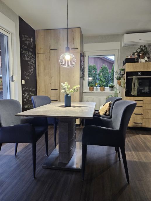 Miza je po vrhu zdrajsana kot razvidno iz zadnje slike. Lahko se čez prelima samolepilna tapeta ali da čez prt.