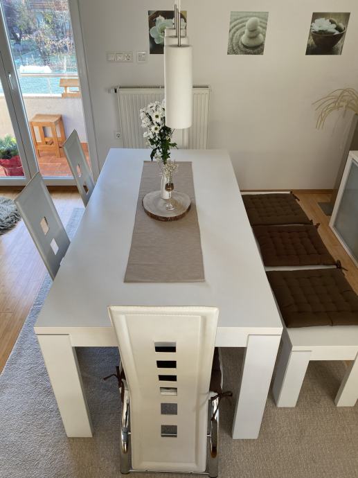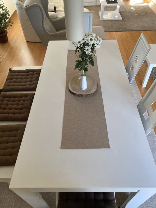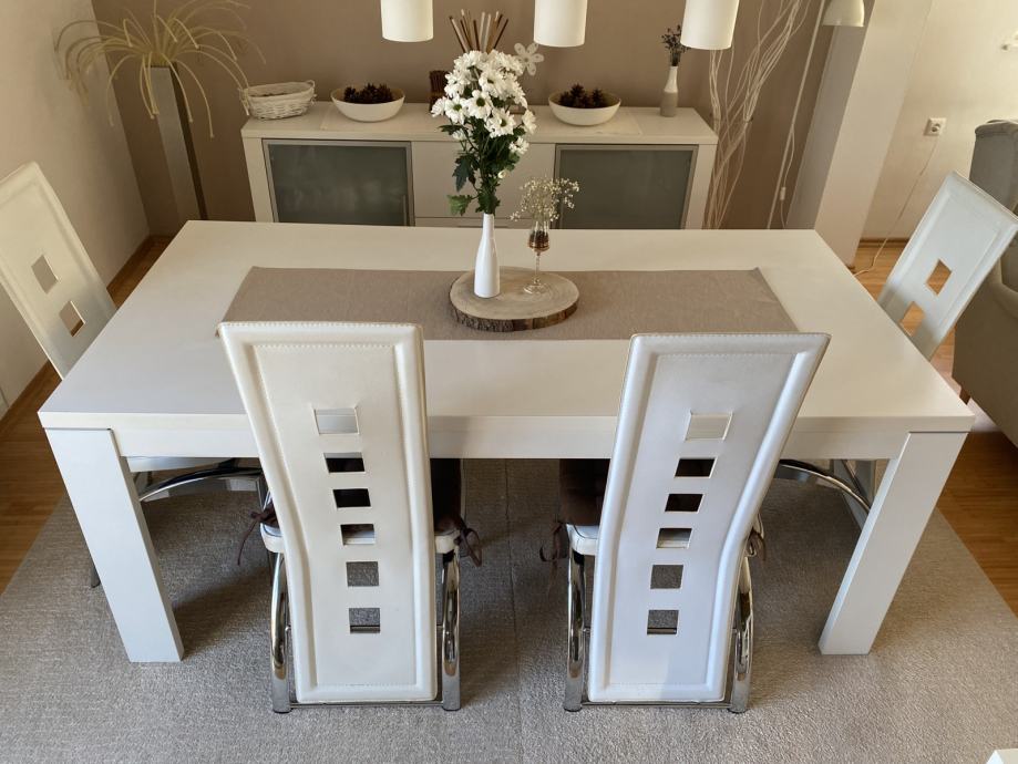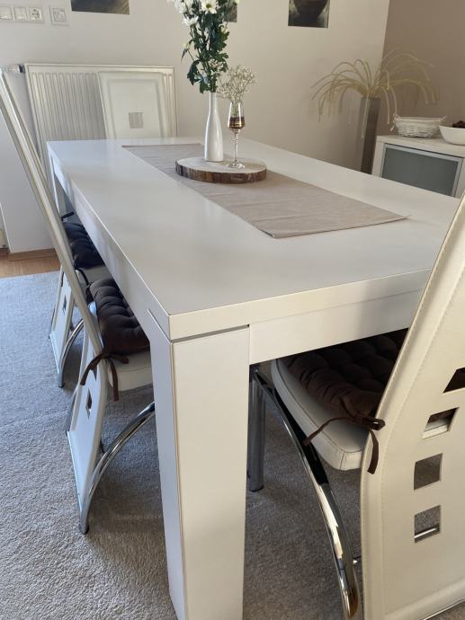 Jedilna miza, bele barve, dimenzije 180x174x90cm;