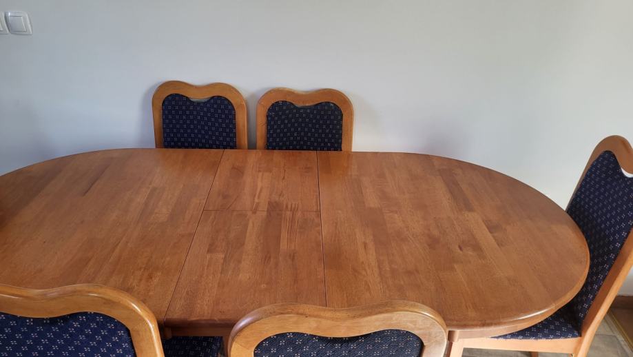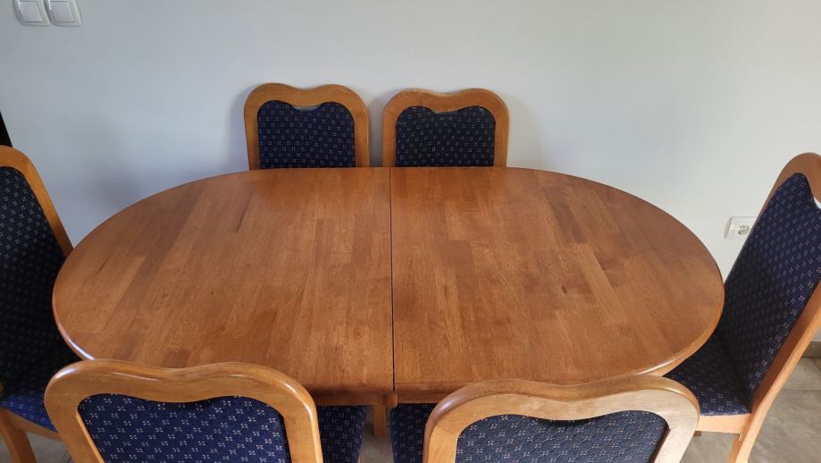 Prodam zelo lepo ohranjeno ovalno mizo iz lesa s šestimi stoli. Velikost mize 145x88x75. Miza se raztegne do dolžine 180cm.. Cena je 300eur. Za vec informacije poklicite.